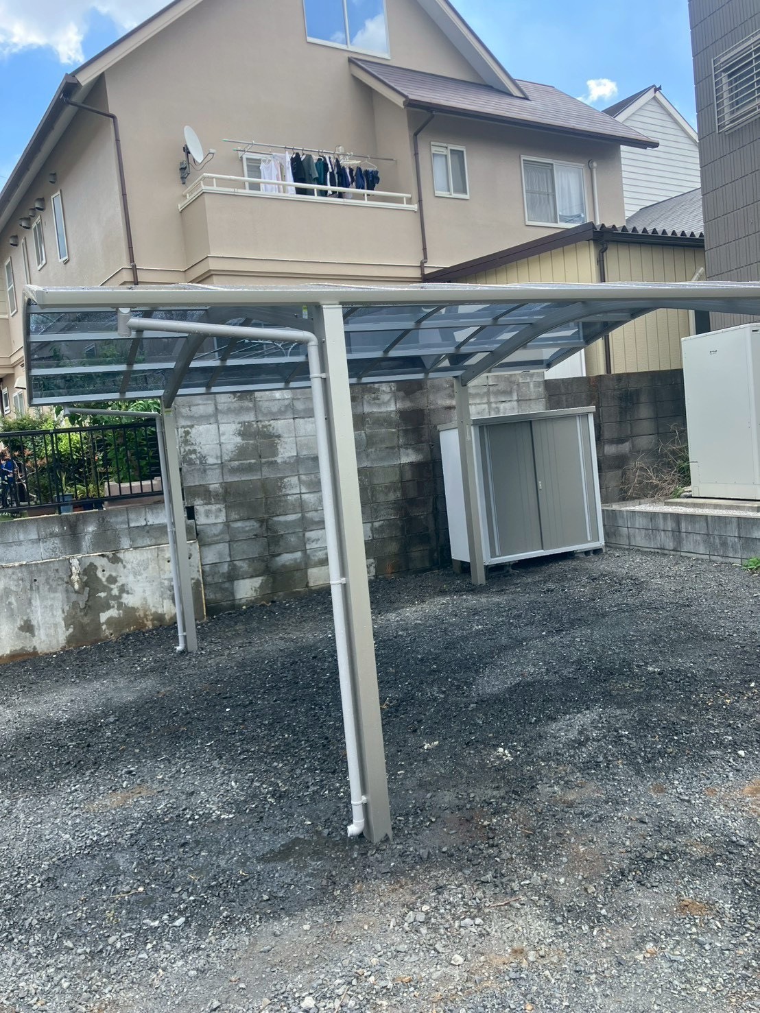 既存の駐車スペースに合わせて、耐久性の高いアルミ製カーポートを、設置しました。