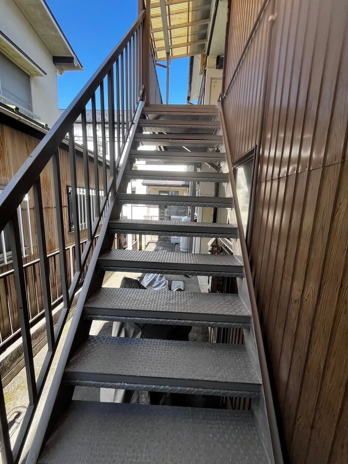 外構・エクステリア工事 / 2025年11月12日 アパート外階段 補修工事 経年劣化により傷みが見られたため外階段を補修工事を行いました。錆びやひび割れを補修し、塗装を施すことで耐久性と安全性を高めています。ご入居様が安心してご利用いただけるように仕上げました。 PDFを開く 一覧へもどる