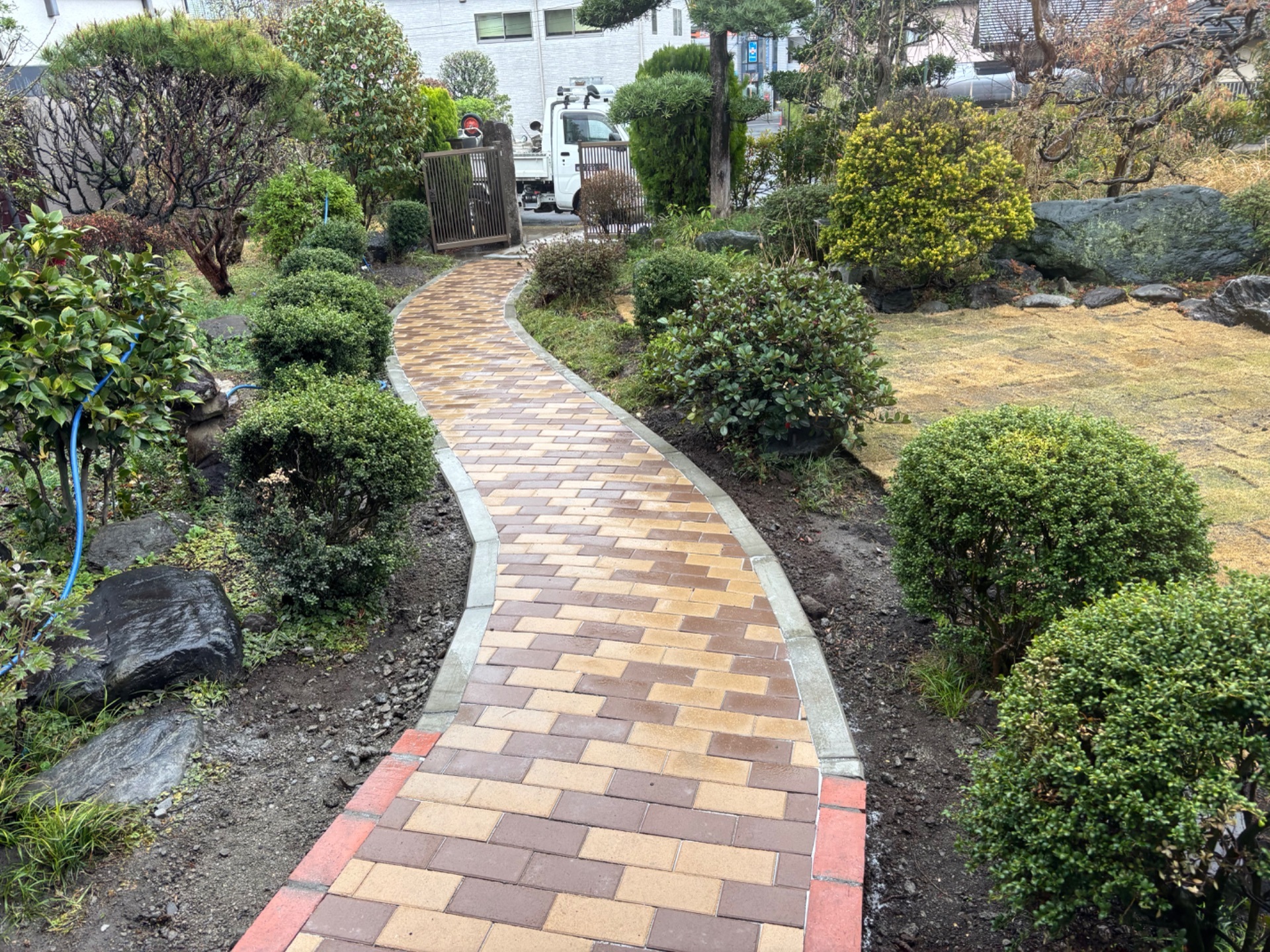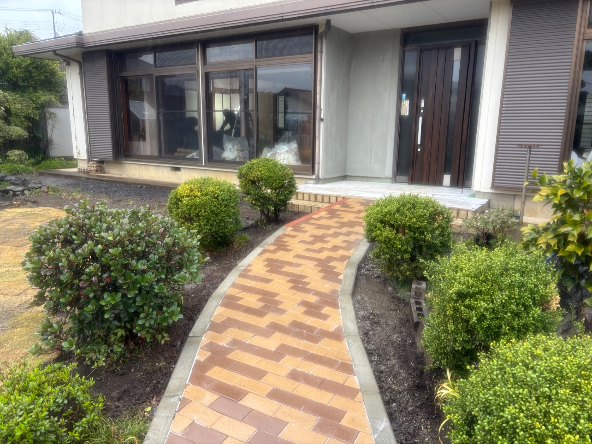 住宅のアプローチ部分にレンガを使用した通路の施工を行いました。