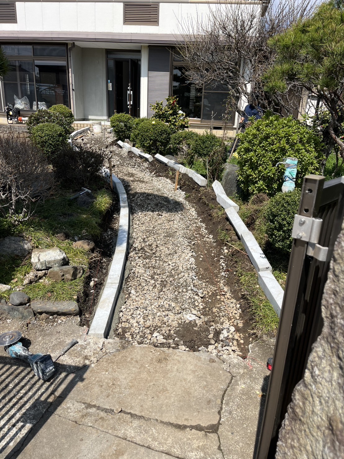 既存の状態から、歩きやすさと見た目の向上を目的に下地づくりから丁寧に施工を進めております。